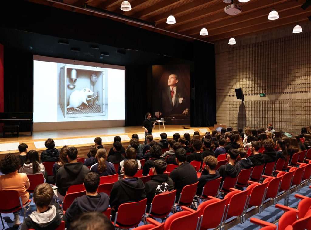 A briefing session titled “The Dopamine Illusion: How Can We Reprogram the Decision-Making Center of Our Brain?” was delivered to our high school students by Psychologist, (M.A) & Lecturer Can Gezgör, organized by the Psychological Counseling and Guidance Department. During the seminar, students learned about the concept of dopamine and its examples from daily life; explored how the addiction cycle develops, examined the effects of digital behaviors on the brain, and had the opportunity to gain comprehensive insight into the legal responsibilities related to these areas.