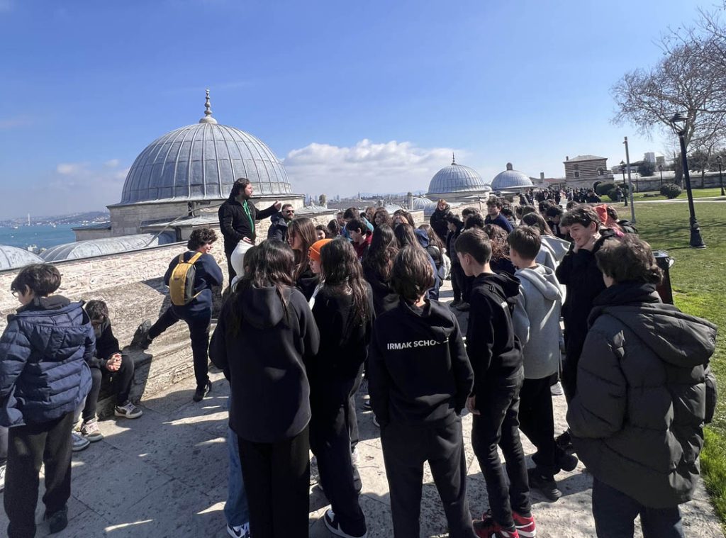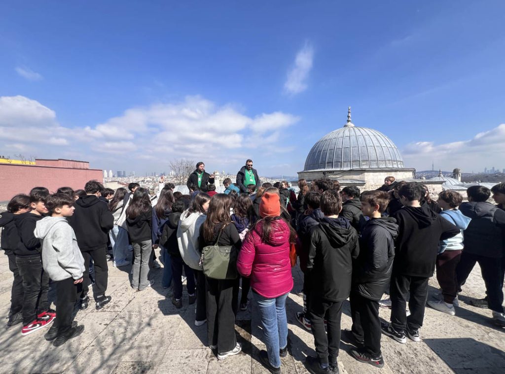 23 Şubat Pazartesi günü, 7. sınıf öğrencilerine yönelik olarak Türkçe-Sosyal Bölümü tarafından İstanbul’un dini, tarihi ve kültürel mirasını yakından tanımak amacıyla bir gezi düzenlendi. Farklı inanç ve kültürlerin bir arada yaşadığı bu şehirde, dinler arası hoşgörü ve tarih bilincini pekiştirmek adına üç önemli mekân ziyaret edildi: İstanbul Rum Ortodoks Patrikhanesi, Neve Şalom Sinagogu ve Süleymaniye Camii. Gezinin ilk durağı İstanbul Rum Ortodoks Patrikhanesi oldu. Ortodoks dünyası için büyük bir öneme sahip olan bu mekânda, rehber eşliğinde patrikliğin tarihi gelişimi ve Hristiyanlık açısından taşıdığı anlam hakkında bilgi verildi. Daha sonra patrikhane içinde bulunan Aya Yorgi Kilisesi öğrenciler tarafından ziyaret edildi. Bir sonraki durak Neve Şalom Sinagogu oldu. İstanbul’daki Yahudi toplumu için en önemli ibadet yerlerinden biri olan bu sinagogda; Yahudiliğin ibadet anlayışı, Neve Şalom Sinagogu’nun tarihi ve toplumsal yaşamdaki yeri hakkında bilgilendirme yapıldı. Sinagogun mimari yapısı ve içerisindeki Yahudi sembolleri incelenerek Yahudi kültürü ve inanç sistemi hakkında önemli kazanımlar elde edildi. Ardından sinagogun üst katında yer alan müze ziyaret edildi. Gezinin son durağı ise Süleymaniye Camii oldu. Osmanlı mimarisinin en önemli eserlerinden biri olarak kabul edilen bu camide, Mimar Sinan’ın dehası ve İslam’ın estetik ile ibadet anlayışı yakından gözlemlendi. Kanuni Sultan Süleyman tarafından yaptırılan ve Mimar Sinan’ın “kalfalık eserim” olarak nitelendirdiği bu yapının tarihi, mimari özellikleri ve dini önemi hakkında rehber tarafından bilgi aktarıldı. Bu gezi sayesinde öğrencilerin, farklı inanç ve kültürlere dair daha derin bir anlayış kazanması sağlanırken İstanbul’un zengin tarihine dair önemli bir keşif imkânı sunuldu. Farklı inanç gruplarının barış içinde yaşadığı bu şehirde hoşgörü ve saygının önemi bir kez daha vurgulanmış oldu.