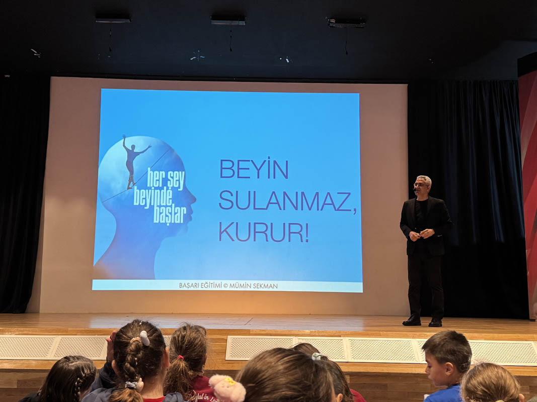 Mümin Sekman explained that the brain governs not only knowledge but also emotions, dreams, and decisions, reminding children of the importance of understanding both their inner and outer worlds.