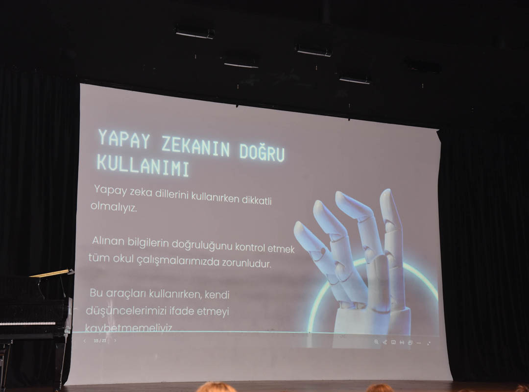 With the widespread use of artificial intelligence tools, it was emphasized that our students should use these technologies in an ethical and responsible manner; the necessity of citing sources correctly and not using ideas without permission was explained with examples.